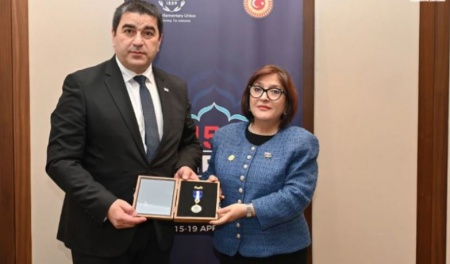შალვა პაპუაშვილმა აზერბაიჯანის რესპუბლიკის მილი მეჯლისის თავმჯდომარეს, საჰიბა გაფაროვას საქართველოს პარლამენტის საპატიო მედალი გადასცა