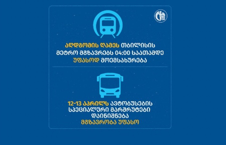 აღდგომის დღესასწაულთან დაკავშირებით თბილისში მეტროთი და ავტობუსით მგზავრობა უფასო იქნება