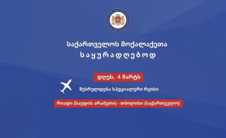 საქართველოს მოქალაქეებისთვის სპეციალური რეისი დღეს საუდის არაბეთიდან შესრულდება