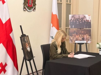 ილია II-ის გარდაცვალებასთან დაკავშირებით, კვიპროსში საქართველოს საელჩოს წარმომადგენლობითი პალატის პრეზიდენტი ანიტა დემეტრიუ ეწვია და სამძიმრის წიგნში ჩანაწერი გააკეთა