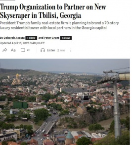"ქვეყანა ესწრაფვის უცხოური კაპიტალის მოზიდვას, ბიზნესზე მორგებული პოლიტიკის, შედარებით დაბალი გადასახადების და მზარდი ტურისტული სექტორის პოპულარიზაციის გზით" - The Wall Street Journal-ი Trump Tower Tbilisi-ის პროექტზე